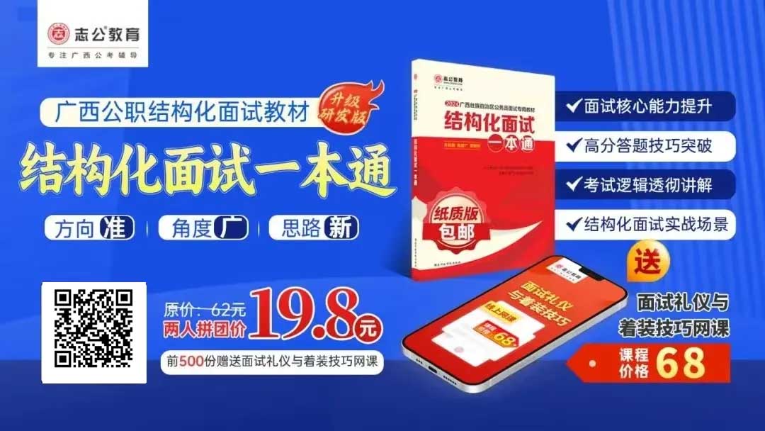 廣西區(qū)考面試準備需緊扣本土特色,強化邏輯表達和實務能力,同時注重細節(jié)(如資格復審材料、禮儀)。建議從現(xiàn)在起每天練習2-3套題,持續(xù)積累廣西熱點案例,爭取面試高分!資料已經(jīng)為大家準備好了,快去看看吧!