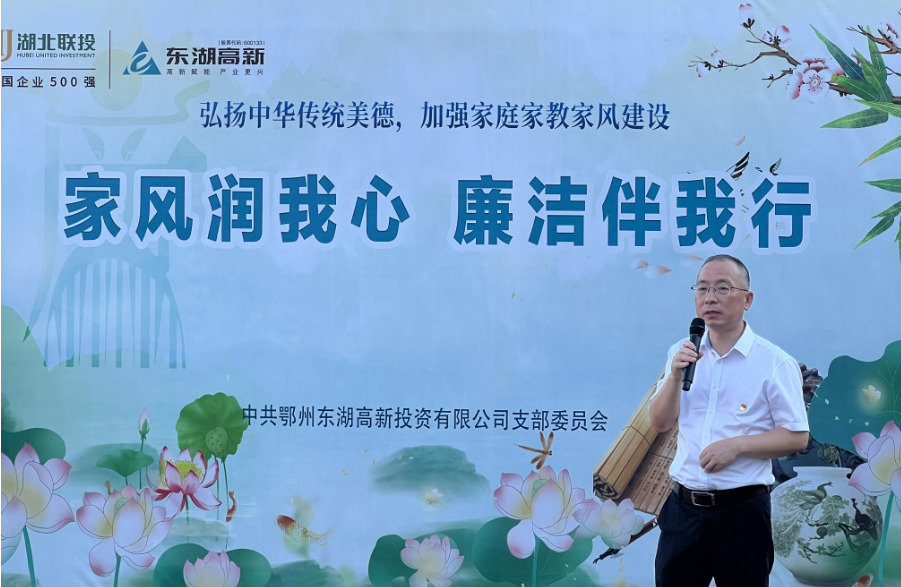 ??為深入貫徹落實習(xí)近平總書記關(guān)于注重家庭家教家風(fēng)建設(shè)的重要論述,推進(jìn)廉潔文化進(jìn)家庭,筑牢“正風(fēng)興企”思想根基,9月28日下午,東湖高新集團(tuán)鄂州公司支部以“家書潤我心廉潔伴我行”為主題在紅蓮湖畔開展“清廉家風(fēng)”公司開放日活動,鄂州公司全體黨員、關(guān)鍵崗位員工及家屬代表共計30余人參加了本次活動,科技園黨總支專職紀(jì)檢委員姜玉林出席活動。
