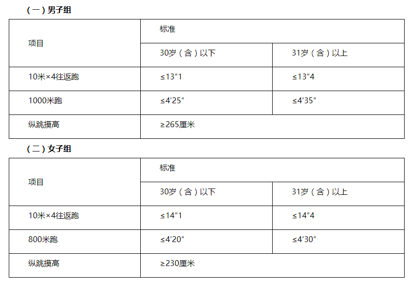 體能測評三項全部達(dá)標(biāo)方為合格。報考理化檢驗、獄醫(yī)緊缺職位的人員,體能測評三項中有兩項達(dá)標(biāo)的,視為合格。