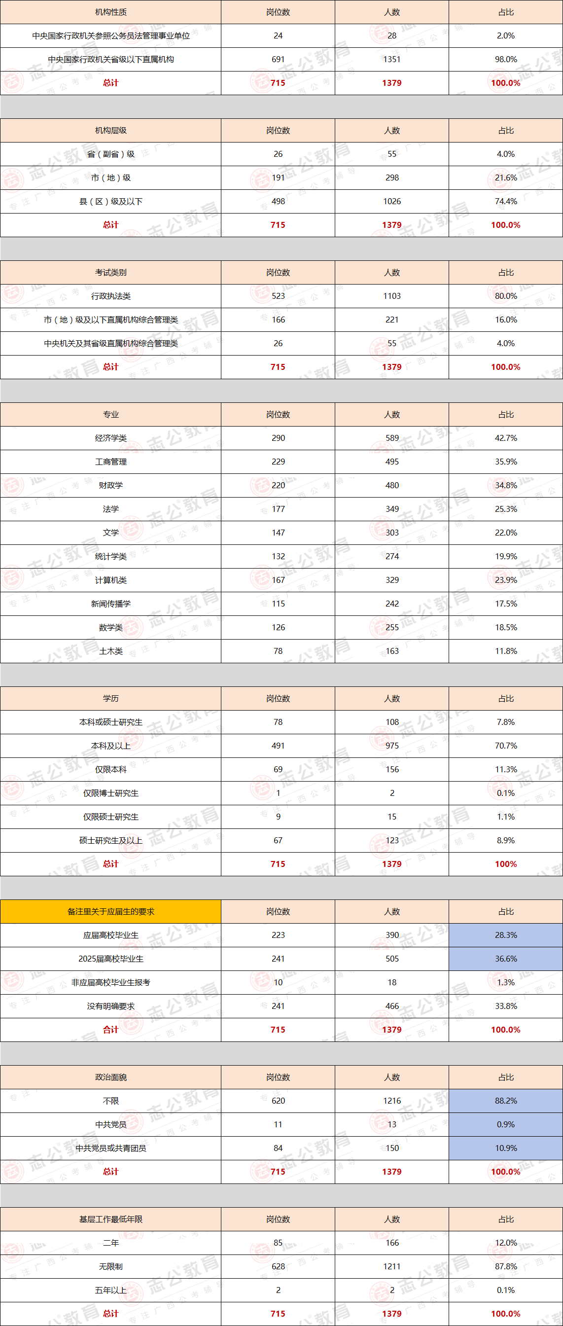 2025國考廣西職位分析:擴(kuò)招!共715個(gè)崗位,招錄人數(shù)1379人!