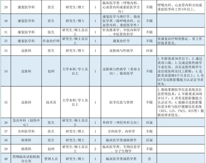 博士崗位:全年長期招聘(我院將根據(jù)報名情況分批次安排面試,具體以醫(yī)院通知為準),崗位招滿即關閉報名通道。