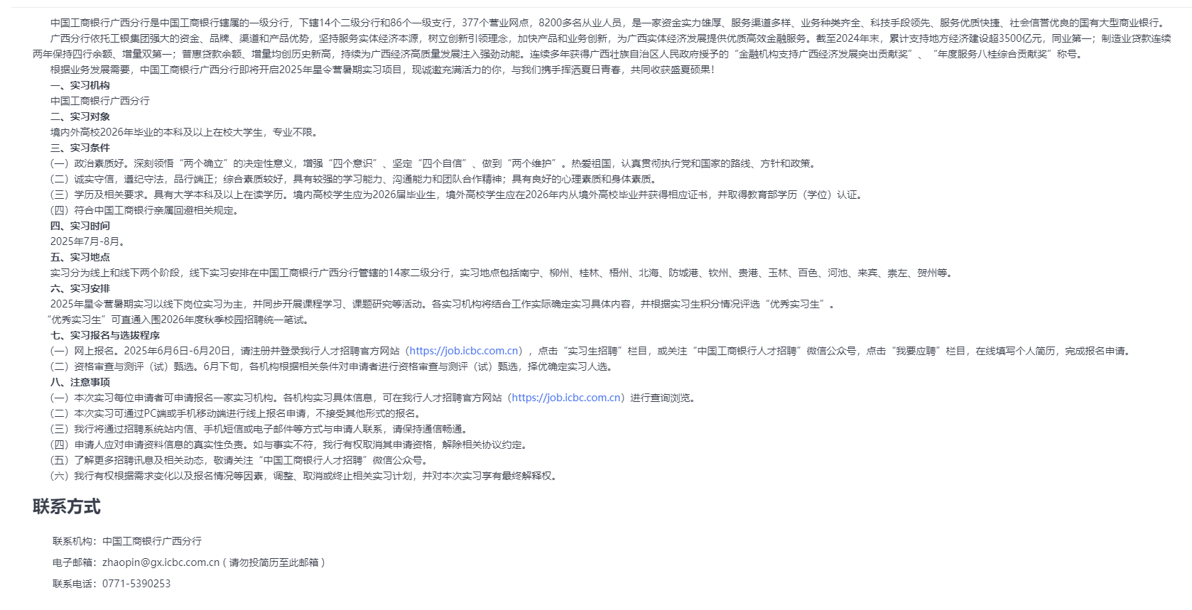 中國工商銀行廣西分行2025年星令營暑期實習公告