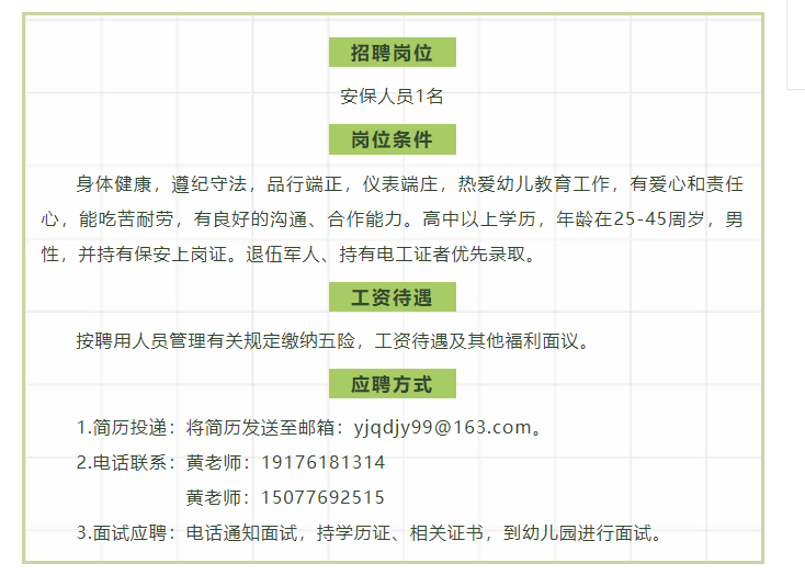 原文標題:百色市右江區(qū)第九幼兒園招聘安保人員公告