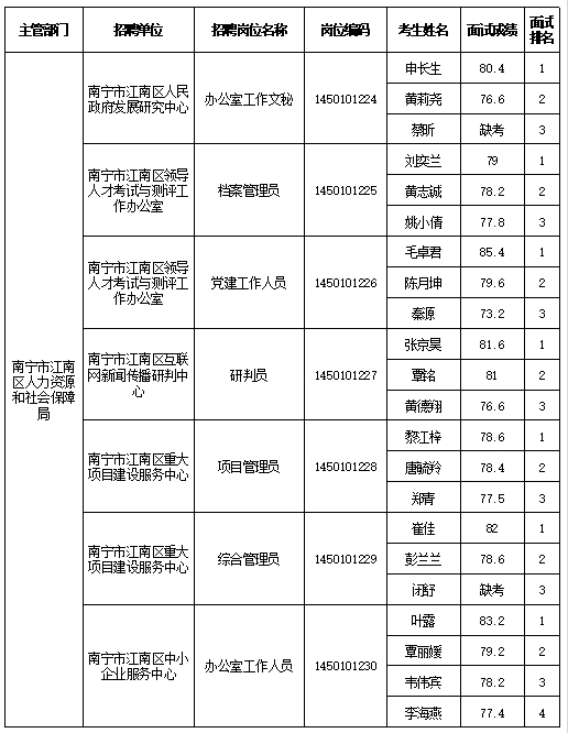 原文標(biāo)題:南寧市江南區(qū)人力資源和社會保障局2025年公開考試招聘事業(yè)單位工作人員面試成績表