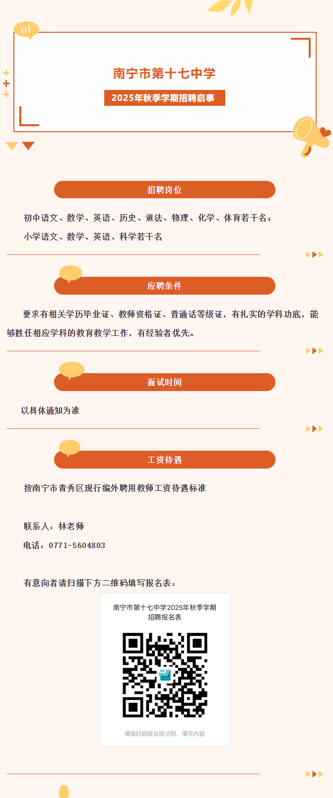 2025年南寧市第十七中學(xué)秋季學(xué)期招聘啟事
