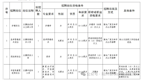 因工作需要,陸川縣橫山鎮(zhèn)衛(wèi)生院向社會(huì)公開招聘編外工作人員。具體招聘事宜如下: