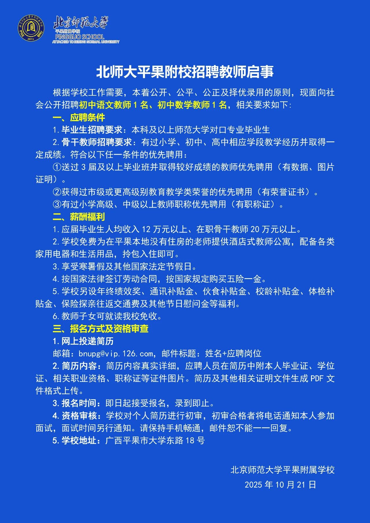 原文標題:北師大平果附校教師、校辦干事及工勤人員招聘啟事