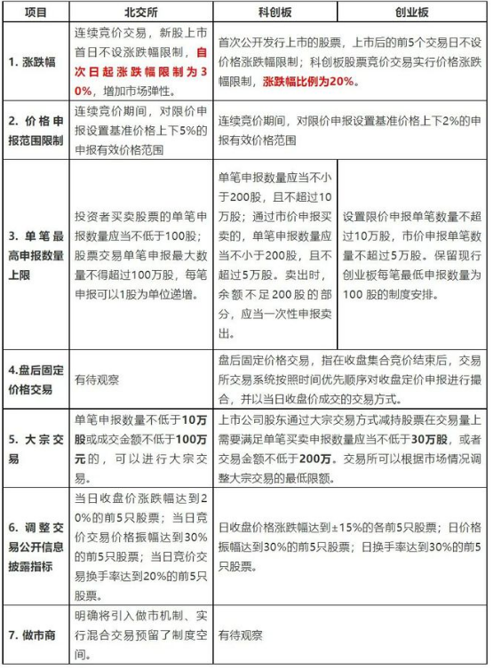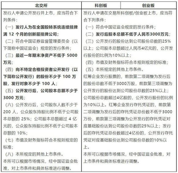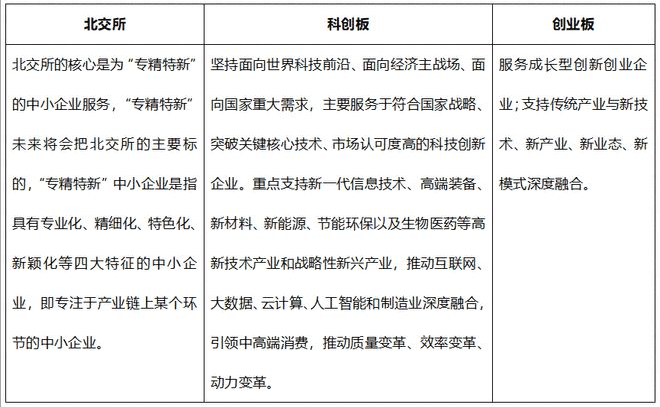 四、目前北交所、科創(chuàng)板、創(chuàng)業(yè)板實行注冊制,這三者之間又有什么樣的區(qū)別呢?